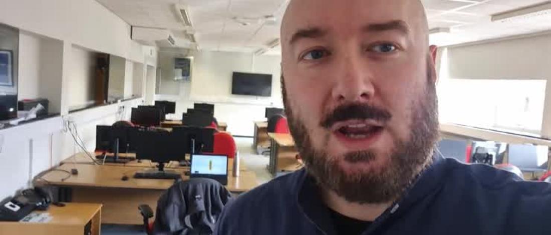 I’m standing at the moment in one of our labs. This is the kind of lab where you’ll do practical work with me on things like Game Design, Game Development, AI, and stuff like that. All sorts of things go on in here. All sorts of research happens in this building as well.