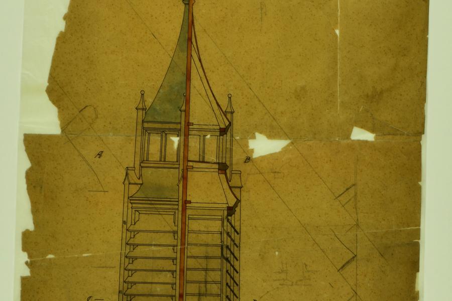 Wedi'i adeiladu rhwng 1907 a 1911, mae'r strwythur rhestredig Gradd I yn gonglfaen i dreftadaeth bensaernïol Prydain, gan gyfuno arddull 'Tuduraidd Colegol' â dylanwadau Celf a Chrefft a'r Dadeni. Pan ddaethpwyd ar draws darluniau gwreiddiol Hare, roedd eu cyflwr bregus ar bapur dargopïo’n eu gwneud yn anodd eu trin a'u hadfer. Roedd cadwraeth y casgliad yn hanfodol i adfer y tirnod eiconig hwn.